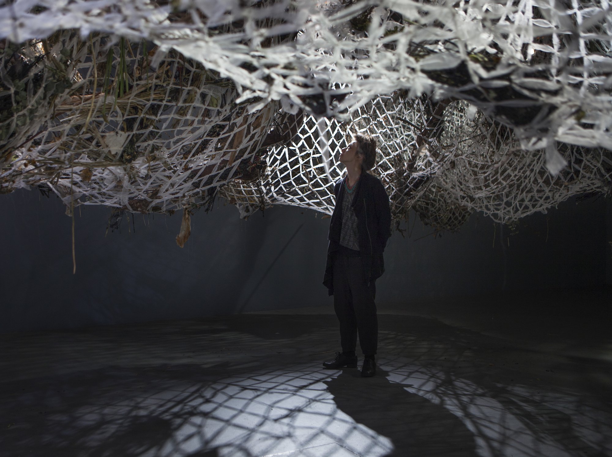 "Abyssal," 2016, silk, debris, 40 x 24 x 8 feet, dimensions variable. installation images courtesy of Daniel Kukla.